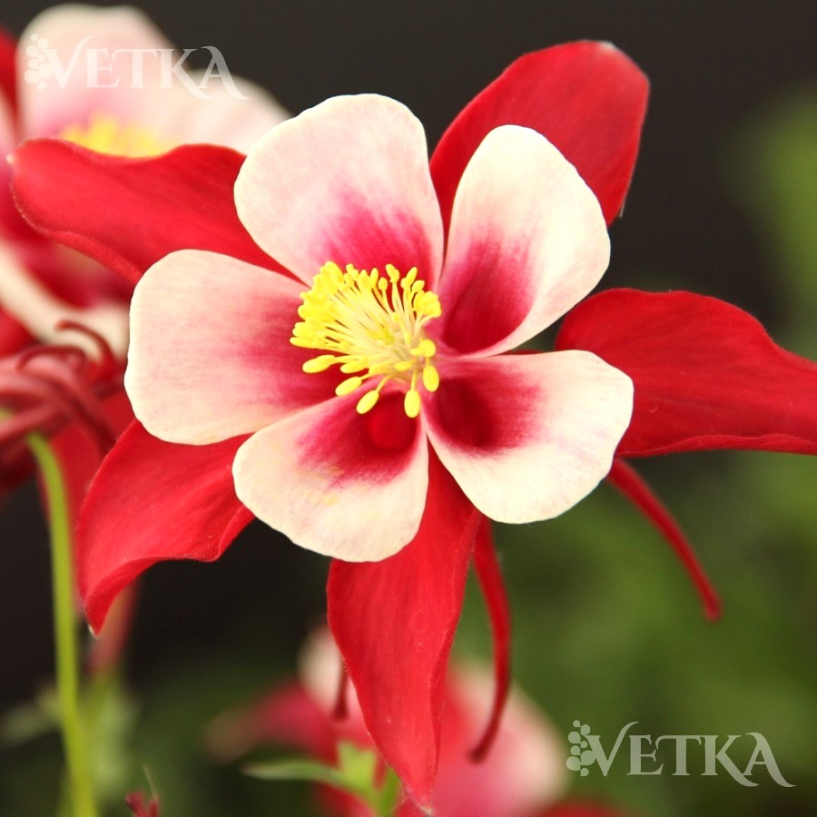 Окрас: Яркий и контрастный. Чашелистики (наружные лепестки) — чисто белые, иногда с легким кремовым оттенком. Внутренние лепестки (венчик) и кончики длинных шпорцев — насыщенно-красные, винно-красные или малиново-красные. Контраст создает эффект горящей звезды.