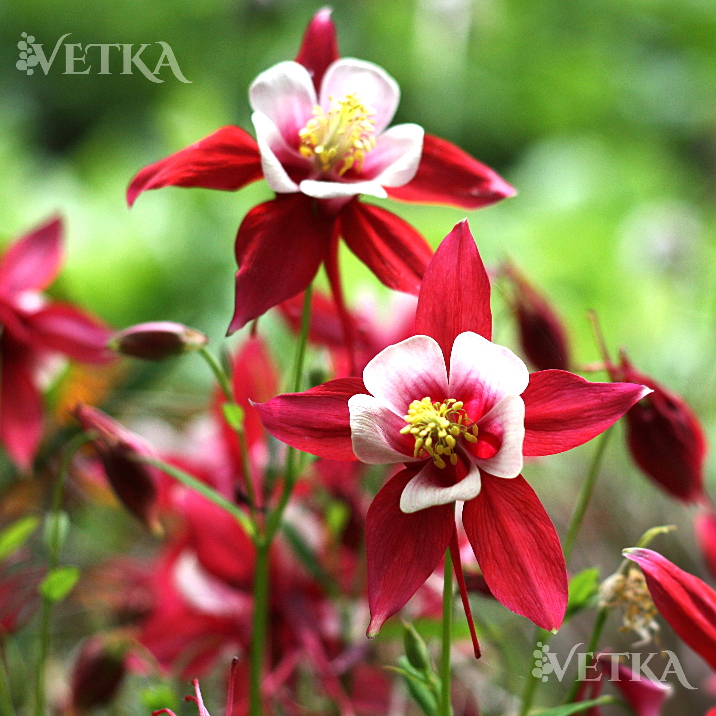 Aquilegia hybrida "Rotstern" — красно-белая