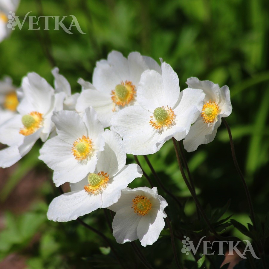 Цветки: Одиночные, крупные (диаметром 4-7 см), кипельно-белые, с пятью шелковистыми, слегка опушенными снаружи лепестками. В центре — пышный пучок ярко-желтых тычинок. Ароматные! Имеют легкий, нежный запах.
