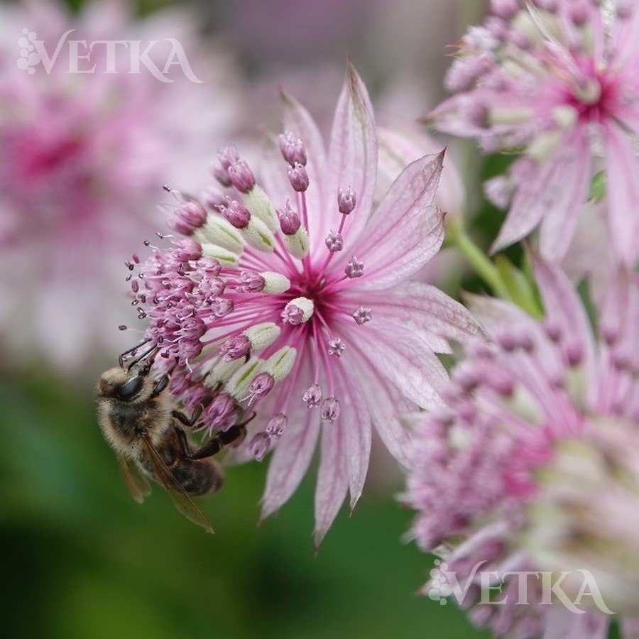 Соцветия: Небольшие зонтиковидные соцветия диаметром 2-3 см с выраженной оберткой из прицветников. Цветет обильно с июня по август. При регулярном удалении отцветших стеблей цветение может продолжаться до осени.