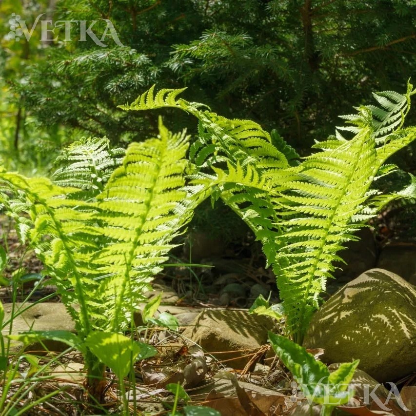 Особенность: Он создает мгновенный эффект пышного, дикого, древнего леса. Идеален для больших участков, парков, зон у водоемов. Это папоротник, который не просто растет, а царствует в подходящих для него условиях.
